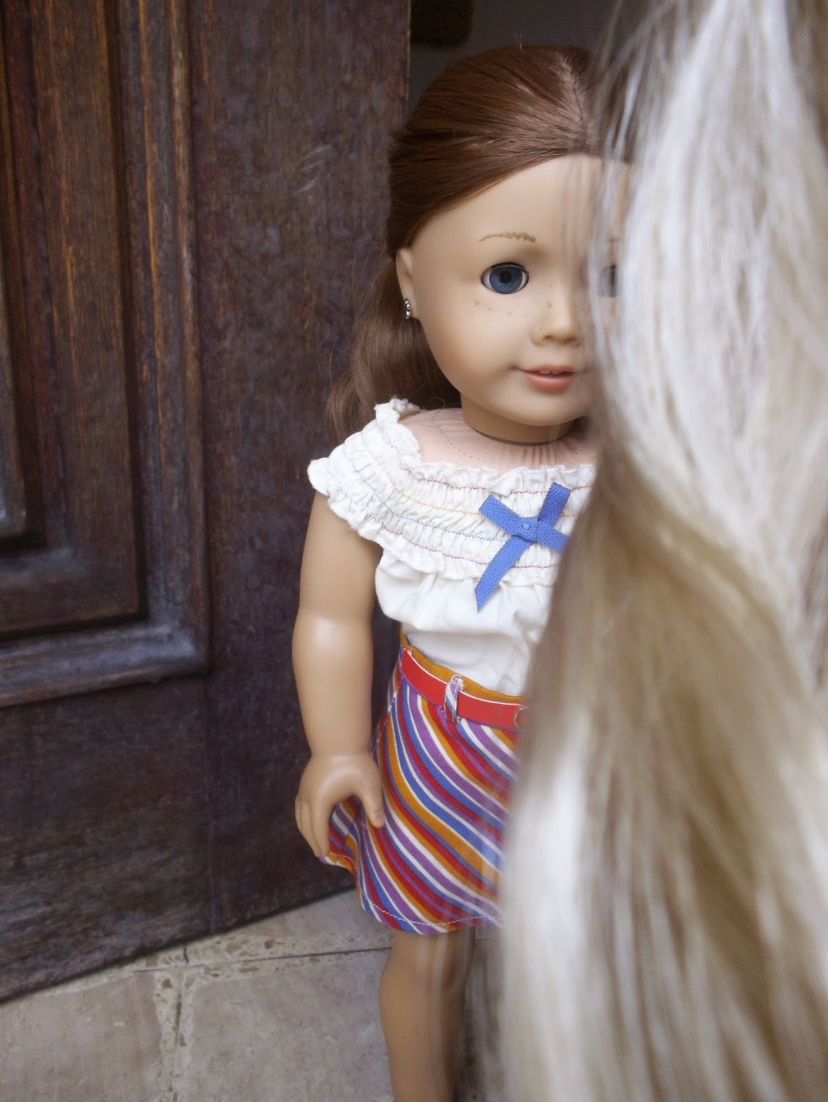 A girl with brown hair, freckles, and blue eyes came up to me. "Hi! I'm Claire. And that is Mae." Mae then chimed in: "Hi there!" I said Hi back. I mean, what else would I say? "Hi." There was an awkward silence. I felt like crawling into a hole.